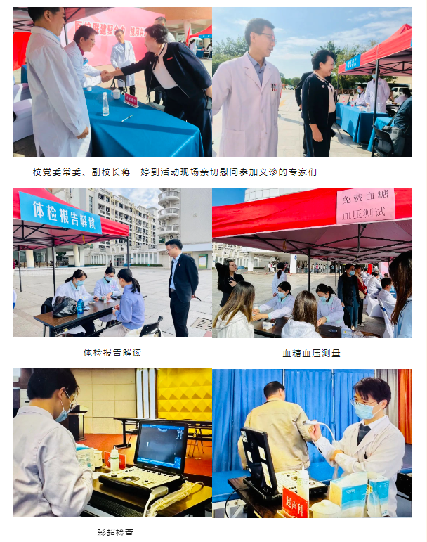 联合义诊进校园,是切实深化地校融合、创新党建服务模式、推动党建引领服务的有效途径,是推动党建工作与业务工作同向聚合、深度融合的有力举措。本次活动为师生提供了特色的健康服务、搭建了便利的健康咨询平台、传播了科学的疾病防治知识,强化了“每个人是自己健康第一责任人”的理念,实现了服务师生“有温度”“零距离”。