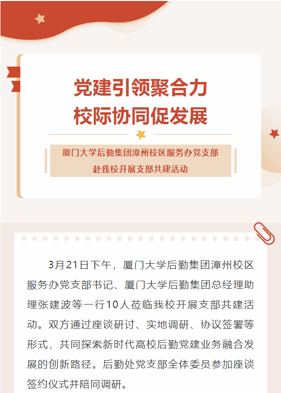 党建引领聚合力 校际协同促发展--厦门大学后勤集团漳州校区服务办党支部赴我校开展支部共建活动