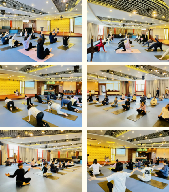 在瑜伽老师的专业指导下,女教职工们在轻柔的音乐中舒展身体,保持良好体态,提升精气神,迸发精神动力,以更加饱满的热情投入到工作和生活中。
