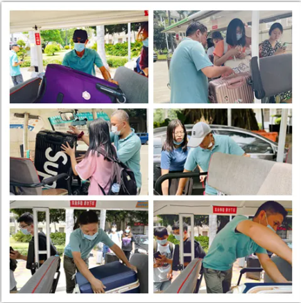 八月,烈日炎炎、正值酷暑,为了让返校的同学能平安、顺利、快速地抵达宿舍,电瓶车师傅即使早已大汗淋漓,却依然顶着烈日坚守岗位,迎接同学回校。
