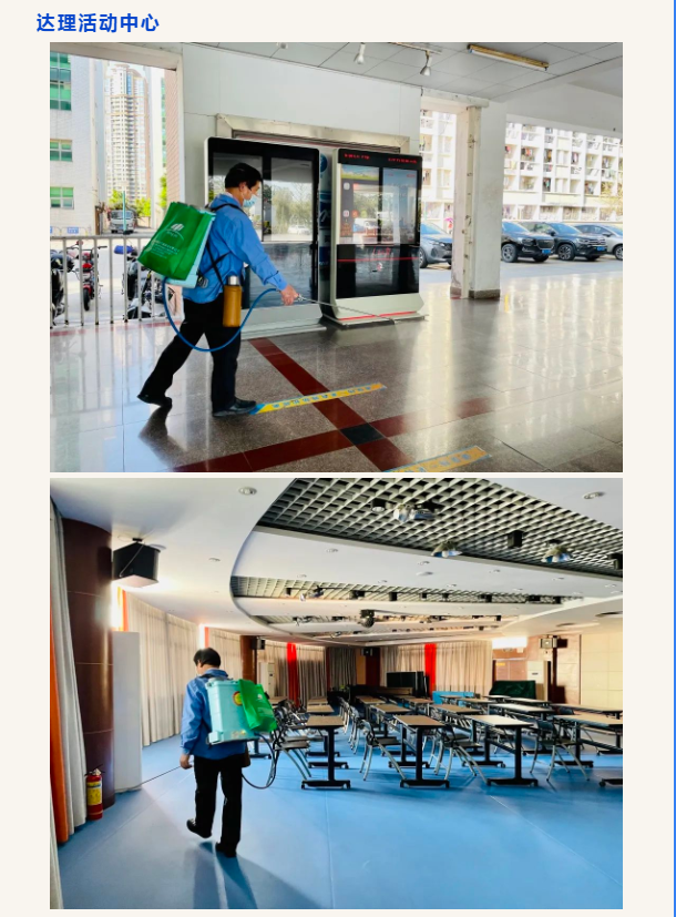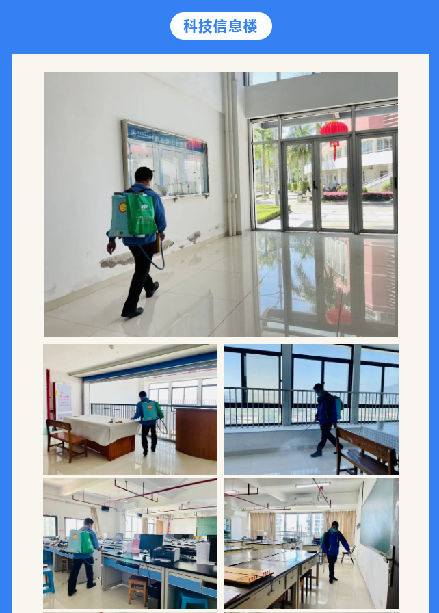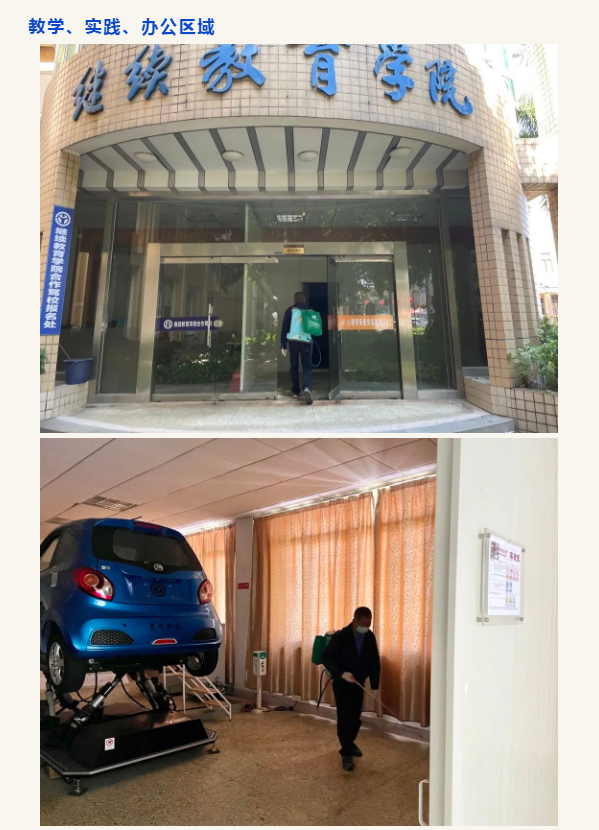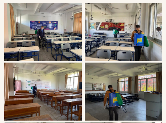 为保障我校有序恢复线下教学,坚决落实人、物、环境同防,后勤管理处于4月4日、5日组织开展全校内外环境消毒消杀,以“分步实施、不留死角、全面消杀”为原则,科学制定消毒计划,确保校园消毒消杀工作科学严谨、全面规范