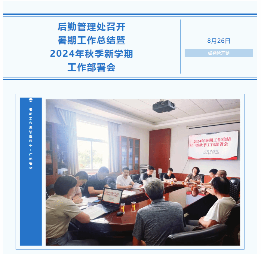 会议要求,一要持续巩固拓展党纪学习教育成果。要深化党纪学习教育成果,将党风廉政建设与中心工作同谋划、同部署、同落实,在全链条全周期全覆盖上持续发力,加强重点领域、关键环节、重点岗位廉政风险评估和防控,推进后勤廉政风险防控体系建设,以党纪学习教育和作风建设的优良成果为后勤高质量发展提供坚实保障。二要深学细悟党的二十届三中全会精神。要坚持把学习贯彻好党的二十届三中全会精神作为当前和今后一个时期的一项重大政治任务,准确把握全会精神的核心要义,立足后勤管理职能,找准与学校改革发展的契合点,以提供高品质、高质量、高标准服务供给为目标,加快推进后勤服务“载体融合、功能融合、运管融合”多元融合建设;以运用新理念、新设备、新技术转换管理为手段,积极搭建一体化智慧后勤服务平台,着力打造“服务保障+内部管理+监督考核”三位一体的智慧后勤;以团队标准化、优质化、专业化服务保障为基础,充分发挥绩效考核导向作用,加大服务流程优化和服务态度改善力度,努力实现后勤服务治理水平和后勤团队建设双提升。三要直面问题不折不扣抓好整改工作。要按照学校巡视整改工作推进会的部署和要求,深入剖析巡视反馈的问题,聚焦问题找根源、举一反三促警醒,从问题看责任、从现象看本质、从细节看机制,逐项制定整改措施,明确时间表、路线图和责任人,层层压实责任,确保整改任务落地落实、整改问题清仓见底。要坚持“当下改”和“长久立”相结合,做深做细日常监管,推动巡视整改再破题再加力再深化,形成以巡促改、以巡促治的常态长效。四要提前谋划齐心协力做好迎新工作。要按照学校统一部署,始终坚持以师生为中心,努力为师生提供更加贴心、便捷的后勤服务。各科室要各司其职、齐心协力做好餐饮保障、保洁消杀、绿化养护、宿舍维修、师生出行保障、医疗保障等各项准备工作,营造良好的迎新氛围;要加强安全监督监管,牢固树立安全底线思维,尤其是仍在进行的工程项目要加强巡查力度,定期组织安全隐患排查,落实安全隐患整改,确保校园安全稳定,切实用新迎新,用心赢新。