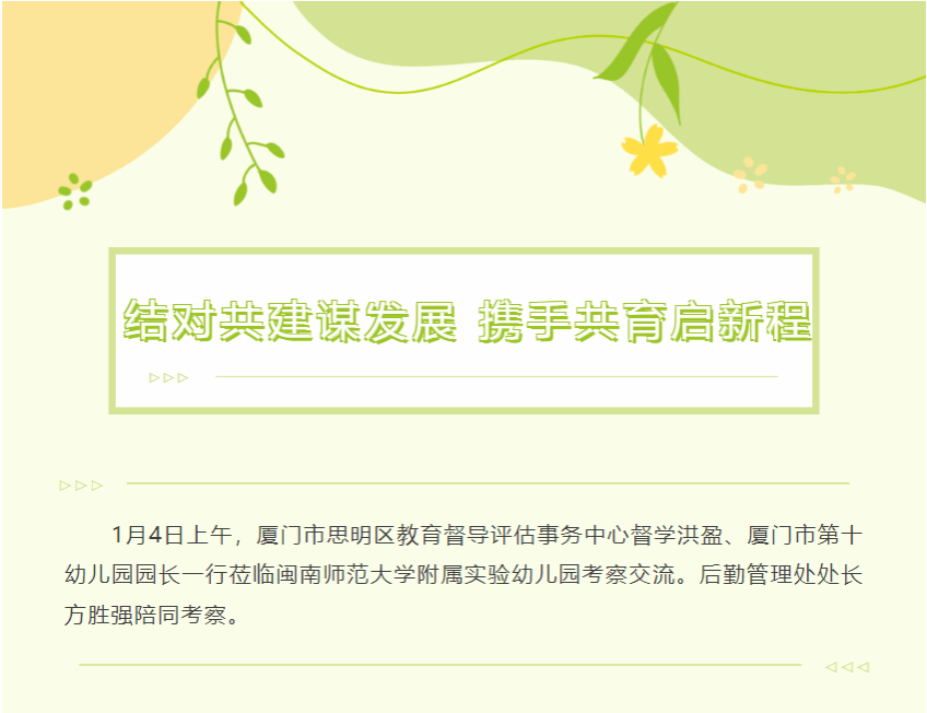 结对共建谋发展 携手共育启新程——厦门市第十幼儿园莅临洽谈结对共建