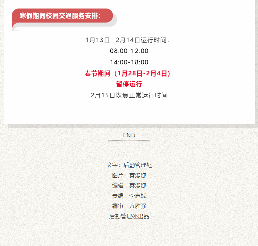 后勤暖情 寒假同行——后勤寒假服务保障安排